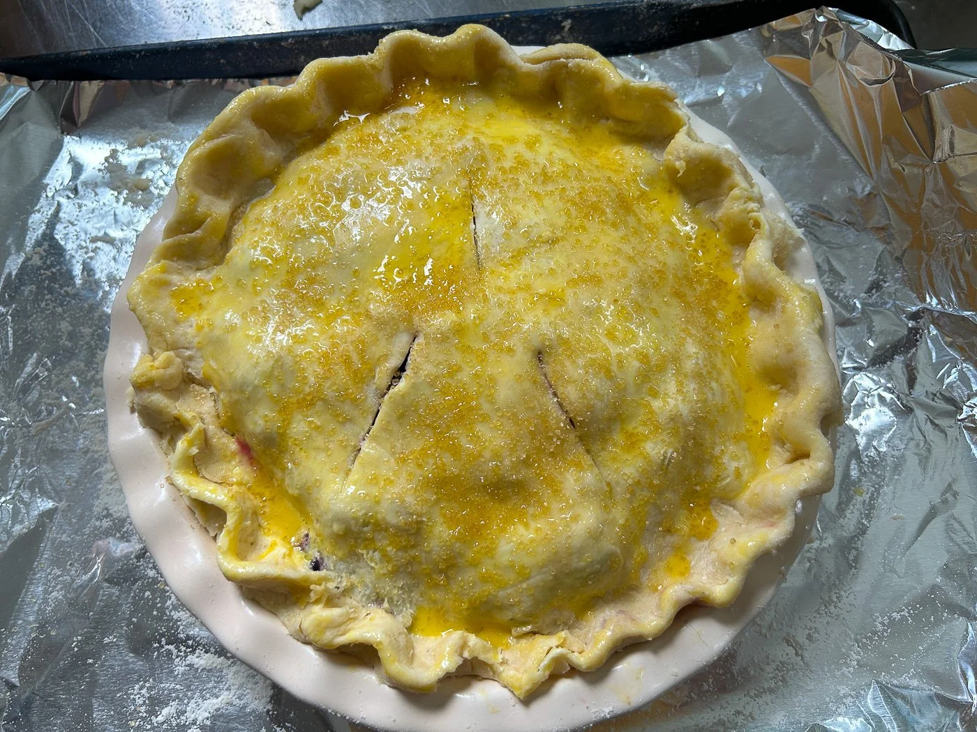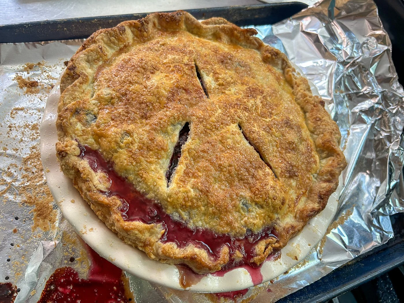 I’m not really a lattice guy — geometry was never my strong suit — so I just added a little more cornstarch and put a traditional lid on my pie.