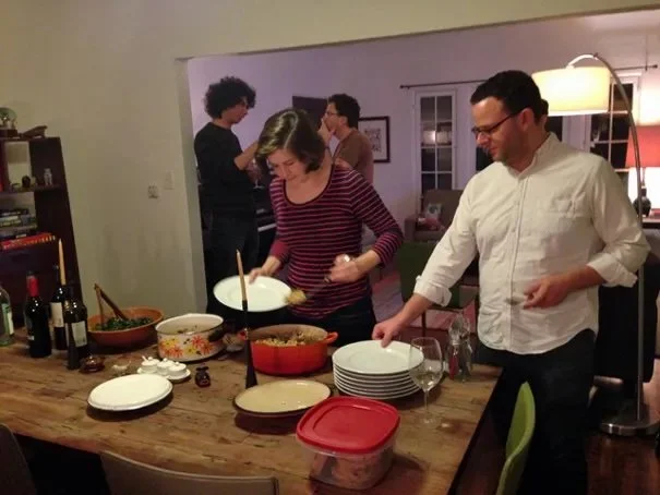 Who says dinners for a crowd have to be unhealthy? Diana does. She brought the incredible chocolate chip cookies that she makes from David Leite's recipe: