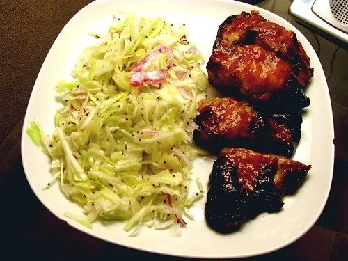 The plate you see in the above photo has a fantastic story. If I told you it's just ribs and coleslaw, that might be enough for you--in fact, that'd be enough for most people. When I was growing up, a special treat was a trip to Bobby Rubino's (A Place for Ribs) where the ribs and coleslaw were plentiful (and relatively cheap) and anyone who asked, "Do these ribs have a story?" would be socked on the head. I'm sure the ribs at Bobby Rubino's have a story, it's just not a story you'd want to know. But the story of the plate above is a story that should make you happy. Let me tell it to you.
