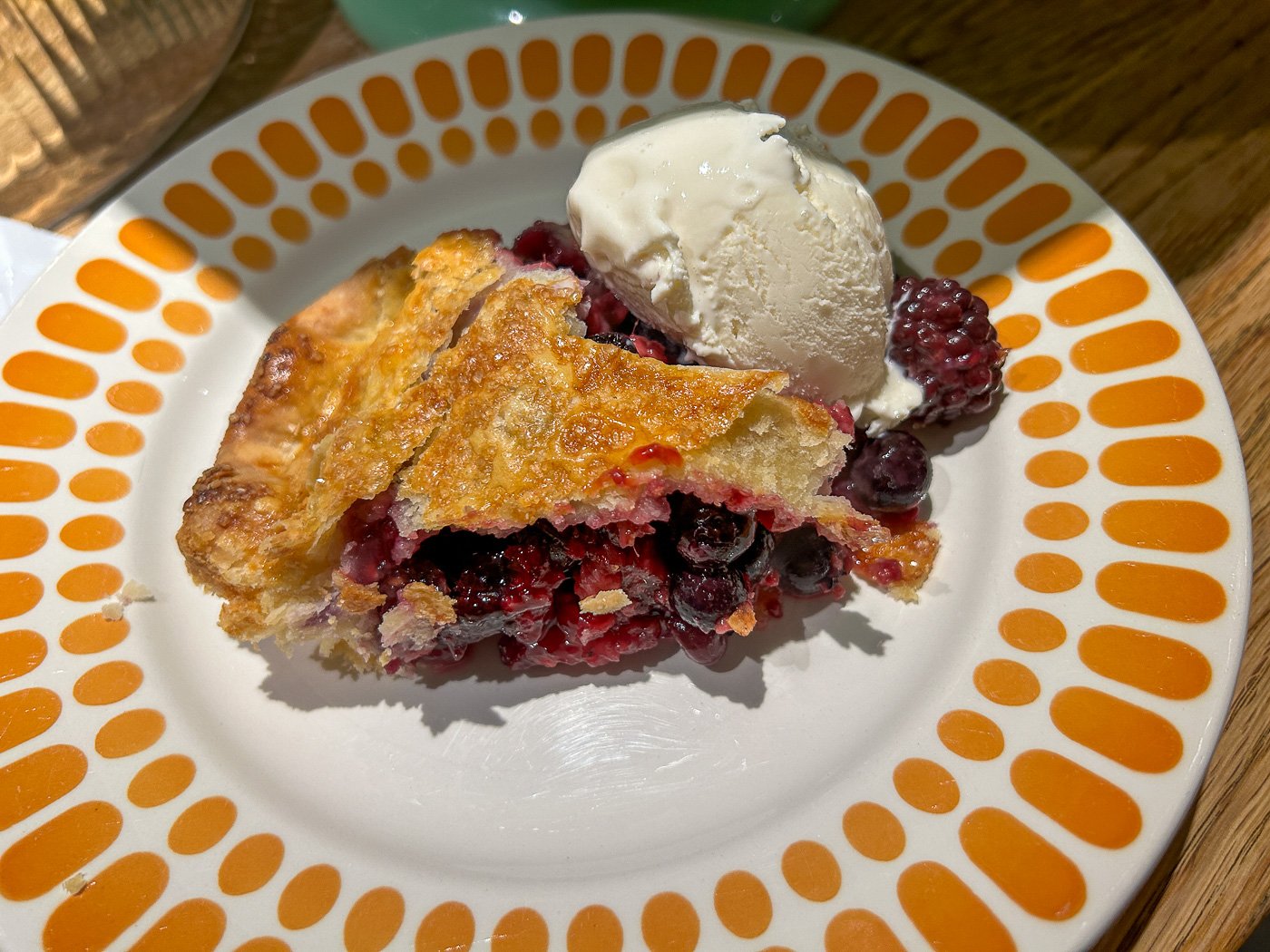 I let it cool for the rest of the day and that night, after serving up some grilled chicken, I sliced up the pie and served it with a scoop of vanilla ice cream.