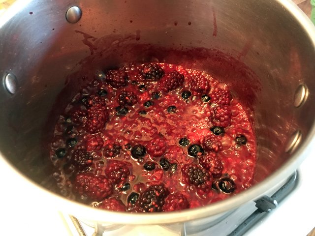 Let the berries cook until the liquid is super syrupy and the berries are mostly broken down: