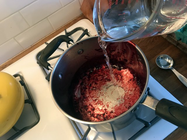 Then, in your now-empty berry pot, add a cup of water: