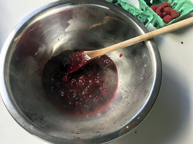 Then pour the berry compote (because that’s what this is, really) into a separate bowl: