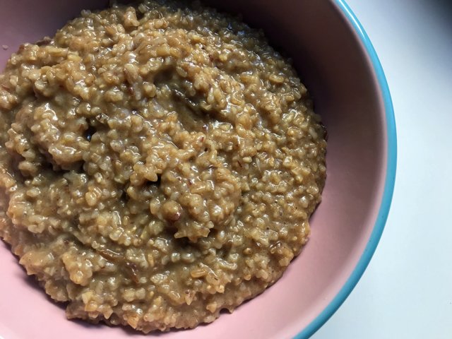 Whip that in too, pour into a bowl, and there you have the coziest, most comforting, relatively healthy (butter’s OK in small doses!) oatmeal in the world.